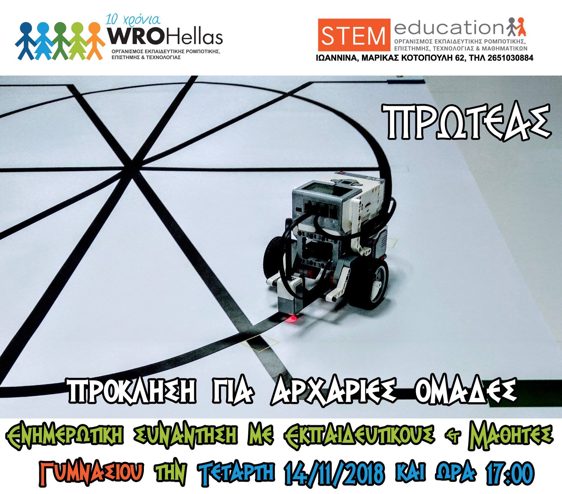 Στην Τρίπολη πραγματοποιήθηκε στις 29/11/2018 στο Περιφερειακό Κέντρο Εκπαιδευτικού Σχεδιασμού (ΠΕ.Κ.Ε.Σ.) Πελοποννήσου η ενημερωτική εκδήλωση – εργαστήριο για τη διάδοση της κατηγορίας «Πρωτέας» του Πανελλήνιου Διαγωνισμού Εκπαιδευτικής Ρομποτικής της WRO Hellas. Η ενημέρωση έγινε από την κ. Τέτη Λιακοπούλου, πρεσβευτή WRO Hellas στην Αρκαδία και το εργαστήριο από τον Κώστα Τσατσαρώνη, με τη συμμετοχή 15 εκπαιδευτικών Πρωτοβάθμιας και Δευτεροβάθμιας εκπαίδευσης καθώς και ομάδας μαθητών.