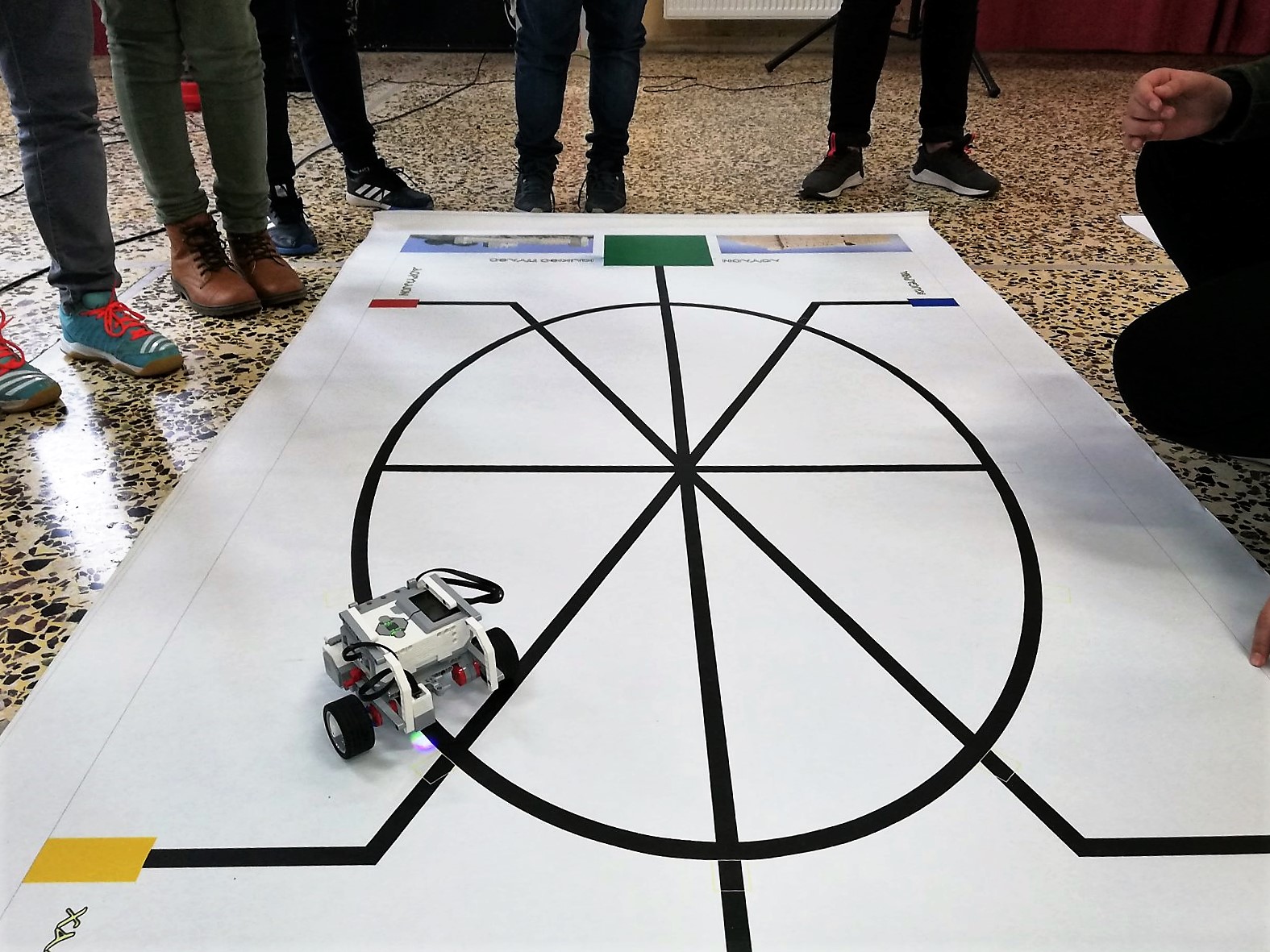 Η αγωνιστική πίστα του Γυμνασίου στον Πανελλήνιο Διαγωνισμό Εκπαιδευτικής Ρομποτικής 2018, με θέμα «Βυζαντινή Αυτοκρατορία και Επικοινωνίες (Φρυκτωρίες)»