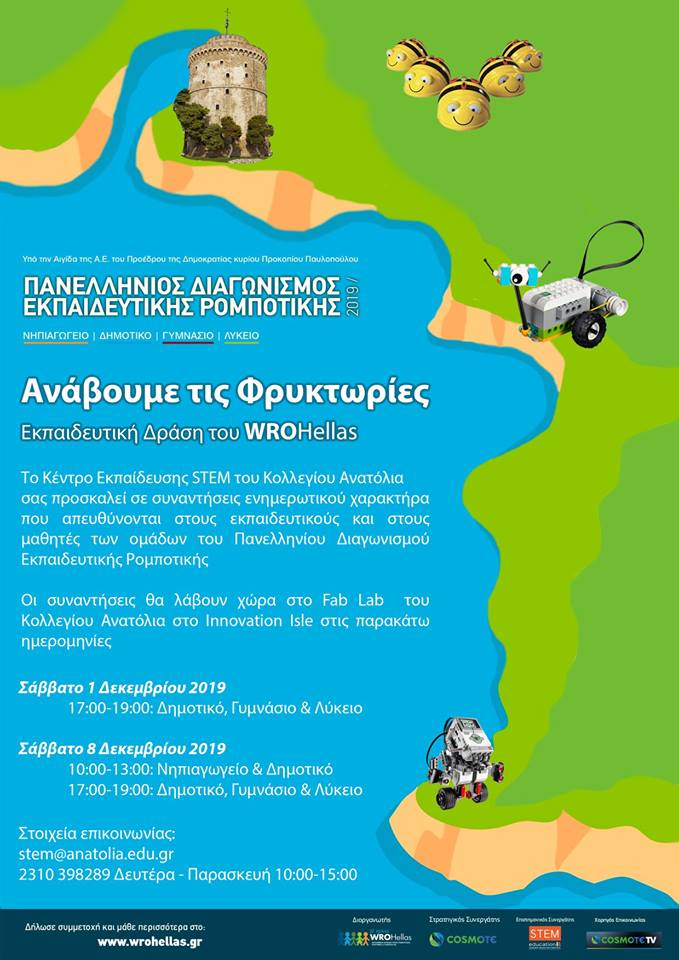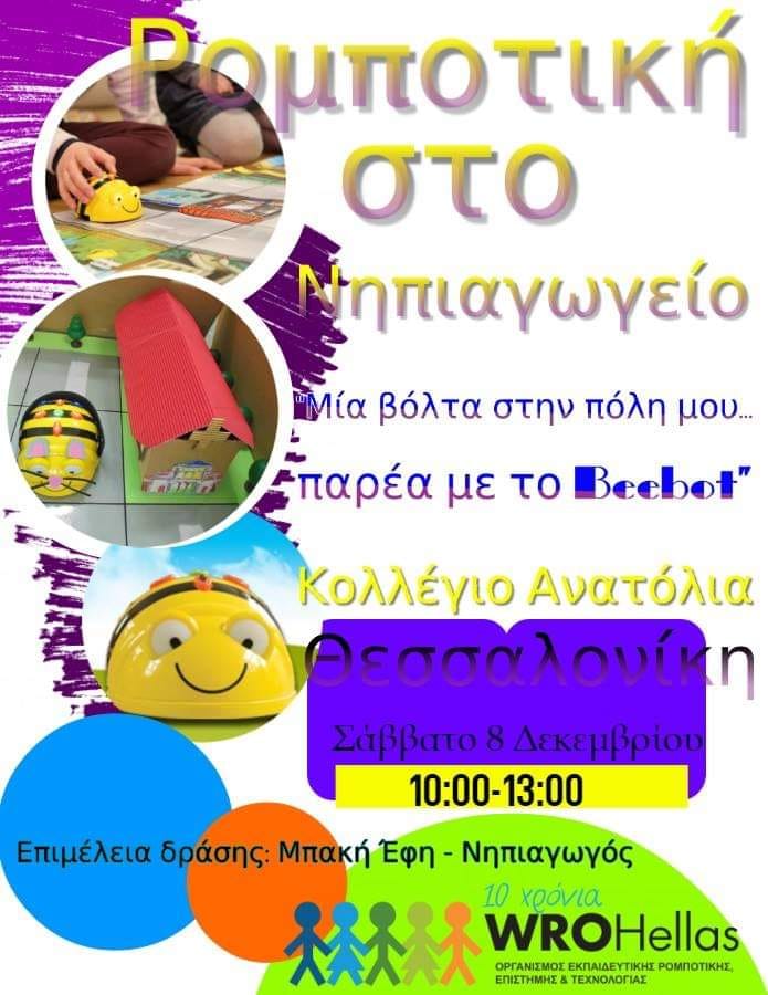 Την 1η Δεκεμβρίου οι Φρυκτωρίες άναψαν και στη Θεσσαλονίκη, ενώ στις 08/12/2018 υλοποιήθηκε η παρουσίαση της δράσης «Μία βόλτα στην πόλη μου» (πιλοτική, μη διαγωνιστική κατηγορία Νηπιαγωγείου που εντάσσεται για πρώτη χρονιά στον Πανελλήνιο Διαγωνισμό Εκπαιδευτικής Ρομποτικής 2019) στο Κολέγιο Ανατόλια. Στη δράση συμμετείχαν μαθητές του 10ου Νηπιαγωγείου Νεάπολης μαζί με εκπαιδευτικούς, καθώς και γονείς αλλά και τα μεγαλύτερα αδέρφια των μαθητών (συνολικά 50 άτομα). Οι μαθητές ήταν ενθουσιασμένοι με τη συμμετοχή τους στη δράση, οι γονείς εντυπωσιάστηκαν με τη θεματολογία και την εμπλοκή των λιλιπούτειων μαθητών σε δράσεις εκπαιδευτικής ρομποτικής, επιθυμώντας να συμμετέχουν ξανά σε ανάλογες εκδηλώσεις, και οι παρόντες εκπαιδευτικοί ενημερώθηκαν για τον προγραμματισμό του επιδαπέδιου ρομπότ Beebot.